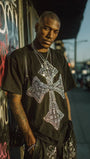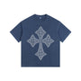 Cross Motif Vintage-washed oversized T-shirt - [CRYSTAL REBEL]
